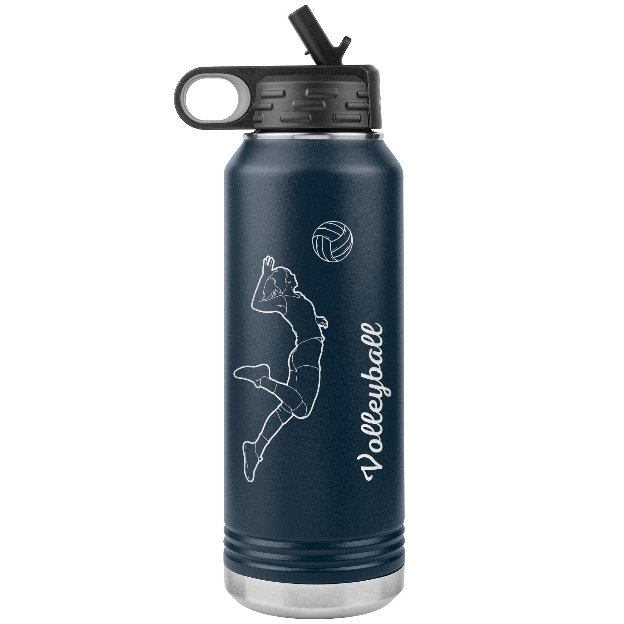 Introducing an elegant water bottle designed for women and girls, as well as players and coaches in the world of volleyball. This exceptional bottle showcases a graceful outline of a female volleyball player in the act of hitting the ball, and it can be customized with a name or any other desired text, adding a personal touch.