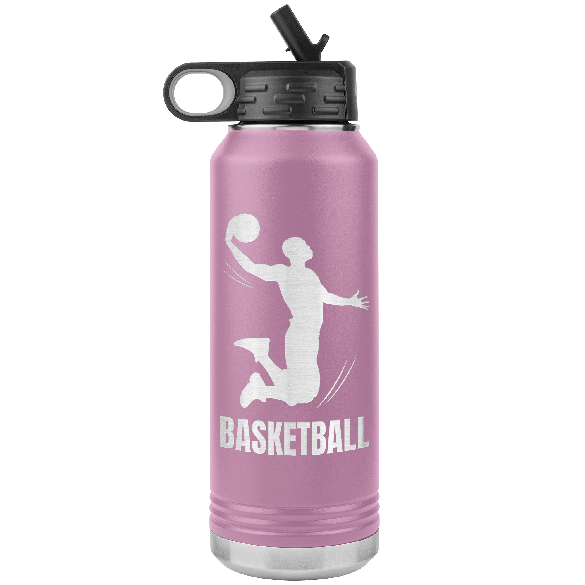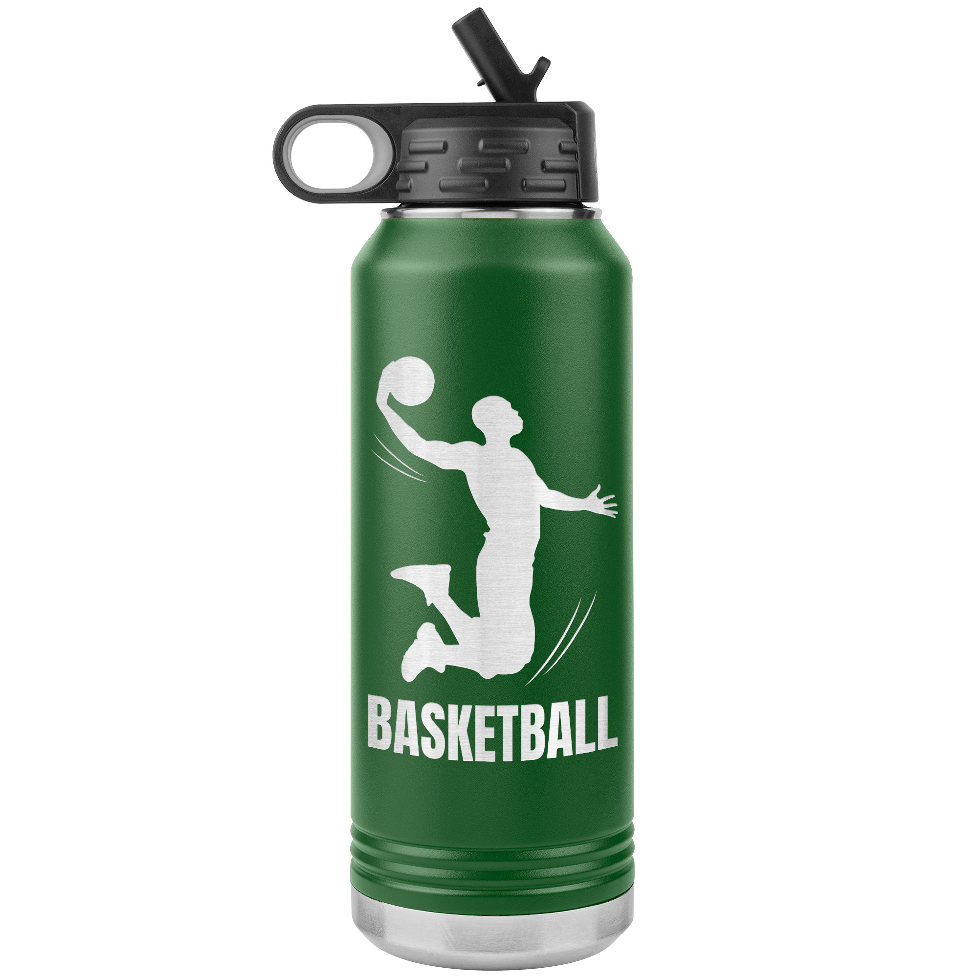 Featuring a laser-etched illustration of a basketball player sinking a shot, this design adorns the bottle’s textured, sweat-resistant surface, revealing the sleek metal underneath. It not only looks cool but also stands the test of time.